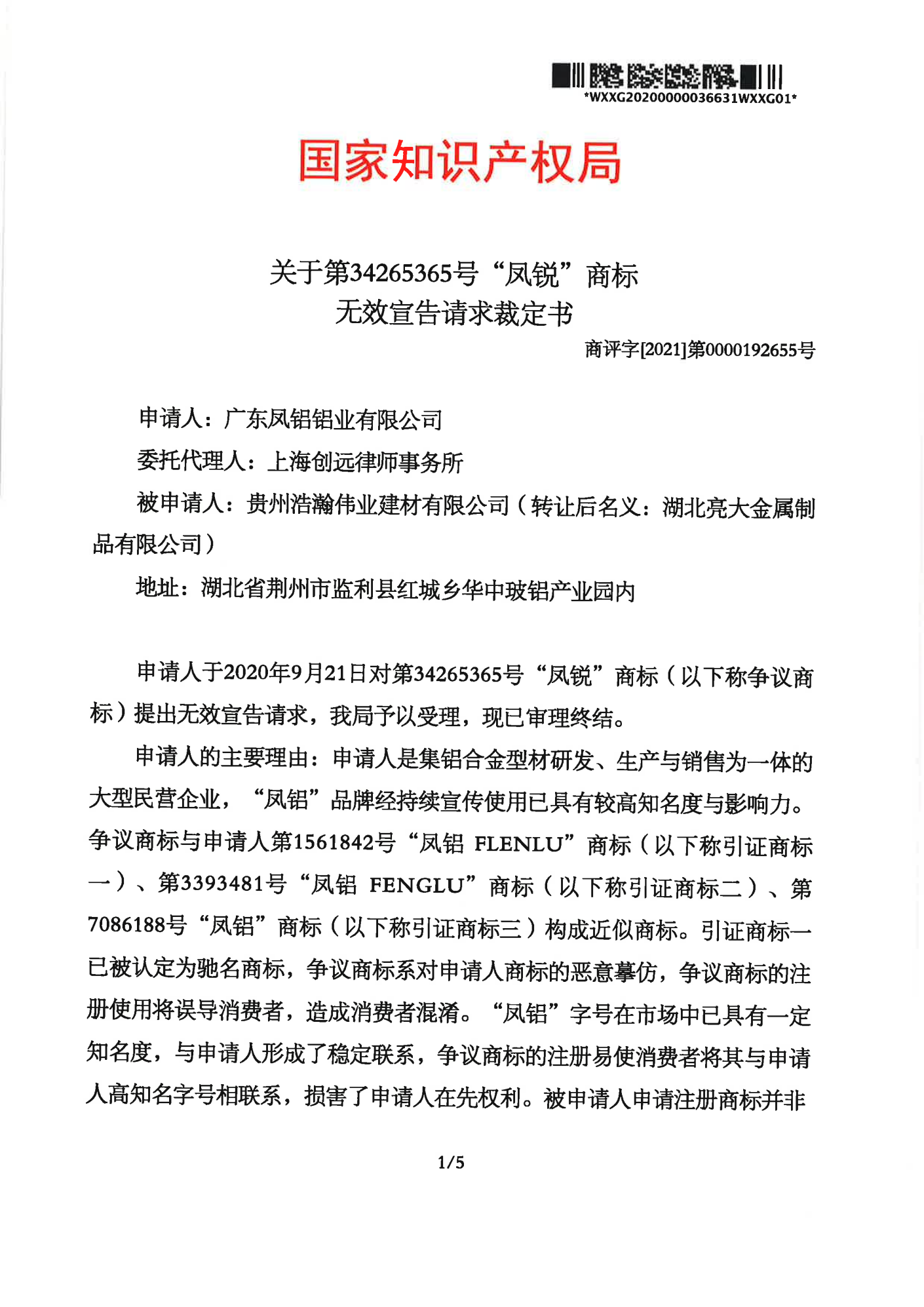 滁州辉知队 | 国家知识产权局:“凤锐”商标无效